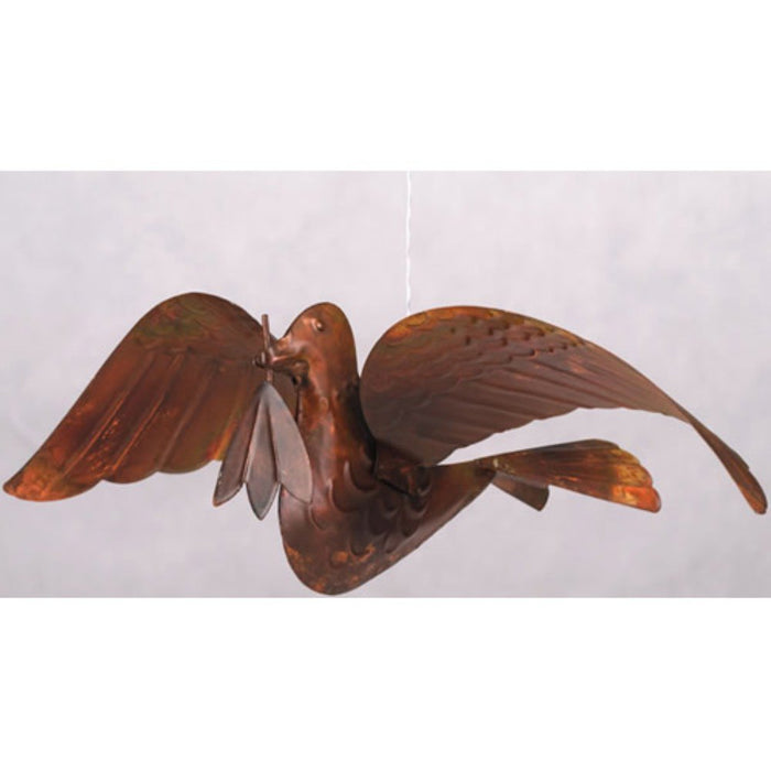 Our Peace Dove Flamed Copper Finish, with an olive branch in its mouth, has a plastic loop to hang from any hook, tree or mobile display. Galvanized. They move in a gentle breeze. A perfect gift.