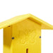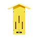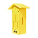 The Birds Choice Pole-Mounted Butterfly House in vibrant yellow is crafted from durable 1/2" recycled poly lumber, ensuring it will never crack, split, or fade. Made in the USA, this butterfly house adds a charming focal point to any yard while providing a safe shelter for butterflies. The house features an engraved butterfly silhouette on the front and is easy to maintain—simply turn the L-hook and lift the side for cleaning. It comes with a two-section black pole; the bottom section includes a ground auger for effortless installation and stability. When installed, the house stands 42" above ground, with dimensions of 8.81" L x 5" W x 12.25" H, offering a sturdy, long-lasting habitat that enhances your outdoor environment.