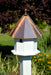 8 Sides, 2 compartments - this large birdhouse has a bright white body topped by a solid copper ridged roof and solid brass finial. Roof removes as easily as a lampshade for simple cleaning - mounting bracket and screws included for easy post mounting. 1 1/2" holes work for bluebirds,chickadees,nuthatch,swallows,titmouse and wrens. Proudly made in the USA.