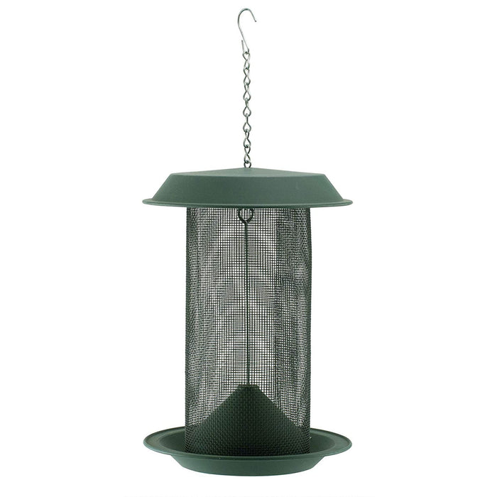 Magnum Thistle Feeder. Holds 4 quarts. Ready to hang. Fully assembled. Magnum feeders attract the most number of birds. Hunter green plastic tops and bottoms.