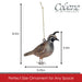 The California Quail is a charming bird recognized by its distinctive curved topknot and sharply patterned plumage. Often spotted waddling in groups across clearings and parks, these sociable birds are native to California and parts of the Northwestern United States. The Cobane Studio California Quail Ornament captures their unique character with exceptional artistry. Each ornament is handblown from glass, carefully hand-painted, and dusted with glitter to enhance its intricate detailing and vibrant appearance. Designed by Margaret Cobane, this piece offers an elegant way to celebrate the gentle spirit and natural beauty of this beloved bird, making it a refined addition to any holiday décor or collector’s assemblage.