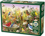 All the Feathered Friends have gathered for a drink at the fountain in the field of tall grass to share how they've been enjoying the day. From blue birds to blue jays, robins, hummingbirds, swallowtails, little brown bird, golden finch, oriole, and so many more birds who all tell their secrets to the butterflies! The lilac sky may be the first part of this 1000 piece puzzle that comes together among the birds, twigs, and Queen Anne's lace.