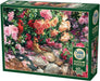 How many cardinals do you see? There are two birds camouflaged quite beautifully along The Garden Wall built of strong stone. With beautiful pink, red, and purple flowers, this 1000 piece garden puzzle will be a good challenge and oh so beautiful when it's complete.