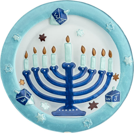LS Arts Glass Menorah Platter Round 11.75 Inch