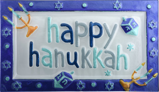 LS Arts Glass Hanukkah Platter 14x8 Inches