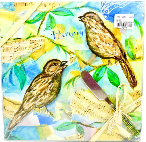 LS Arts Glass Cheese Board Bird Harmony Square 9 Inch