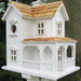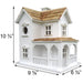 The Prairie Farmhouse birdhouse offers a spacious two-story design featuring a charming wraparound porch, detailed window and door moldings, and a durable pine-shingled roof that enhances both its aesthetic and weather resistance. With a 1.25-inch entry opening, it comfortably accommodates small cavity nesters like wrens, finches, chickadees, and nuthatches. Constructed from exterior-grade plywood for strength, complemented by intricate poly-resin details and finished with non-toxic outdoor paint, this birdhouse ensures long-lasting performance and safe habitation. A convenient cleanout panel simplifies maintenance, while the included mounting bracket allows secure installation on posts, trees, or fences. This expertly crafted birdhouse combines classic farmhouse charm with practical features, making it an ideal habitat for backyard birds. Item Dimensions: 10. 25" H X 9. 5" W X 7" D. Hole 1.25"