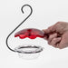 The Birds Choice Hummingbird Single Cup Feeder is a compact and efficient nectar dispenser designed to attract hummingbirds with its vibrant red cover. Its small size and lightweight construction allow for easy placement anywhere in your yard, making it a versatile choice for a variety of outdoor spaces. The feeder features a durable black powder-coated steel hanger for long-lasting use and corrosion resistance. It includes a clear polycarbonate feeding cup paired with a removable red polycarbonate cover, providing a 3 oz. nectar capacity that suits short-term feeding or smaller hummingbird populations. With one nectar port, it ensures easy access for hummingbirds while reducing nectar spillage. The feeder is simple to fill and clean, promoting healthy feeding habits and maintaining nectar freshness. Measuring 5" x 4.5"W x 7.5"H, this feeder is an expert selection for those seeking an easy-to-use, visually appealing hummingbird feeding option that fits seamlessly into any backyard environment.