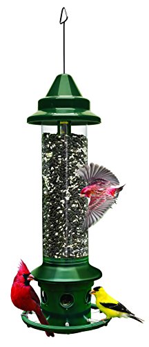 Squirrel Buster Standard Squirrel-proof Bird Feeder w/4 Metal Perches, 1.3-pound Seed Capacity, garden green