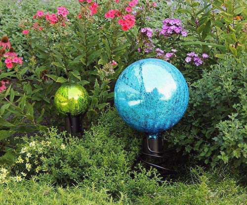 Named “spheres of light” by Antonio Neri in 1612, the first gazing globes date back to 13th century Venice. Popularized in the Victorian era, the mirrored finish provided a fish-eye view of the entire garden and they were believed to fend off misfortune and deliver happiness and joy. Add color, charm, and good luck to your garden with these sparkling garden jewels from ACHLA Designs. These glass balls are blown in a layered technique that gives a crackly appearance over the colored glass and mirror finish while retaining structural integrity. In 11 brilliant colors that will not fade with the sun, and three diameter sizes, 6” 10” and 12”. All Crackle Glass Gazing Globes have a stem that allows them to sit securely in any of our gazing globe stands. Our wrought iron Gazing Globe Stands come in a wide array of sizes and styles for hard surfaces and spiking directly into lawn and garden beds.