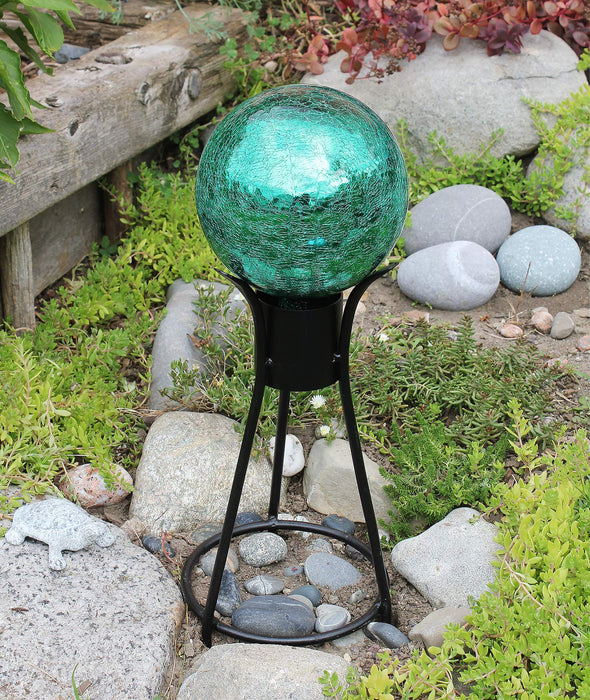 Named “spheres of light” by Antonio Neri in 1612, the first gazing globes date back to 13th century Venice. Popularized in the Victorian era, the mirrored finish provided a fish-eye view of the entire garden and they were believed to fend off misfortune and deliver happiness and joy. Add color, charm, and good luck to your garden with these sparkling garden jewels from ACHLA Designs. These glass balls are blown in a layered technique that gives a crackly appearance over the colored glass and mirror finish while retaining structural integrity. In 11 brilliant colors that will not fade with the sun, and three diameter sizes, 6” 10” and 12”. All Crackle Glass Gazing Globes have a stem that allows them to sit securely in any of our gazing globe stands. Our wrought iron Gazing Globe Stands come in a wide array of sizes and styles for hard surfaces and spiking directly into lawn and garden beds.