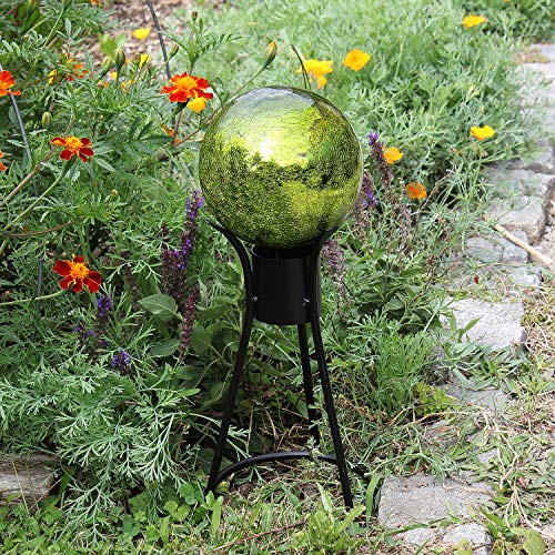 Named “spheres of light” by Antonio Neri in 1612, the first gazing globes date back to 13th century Venice. Popularized in the Victorian era, the mirrored finish provided a fish-eye view of the entire garden and they were believed to fend off misfortune and deliver happiness and joy. Add color, charm, and good luck to your garden with these sparkling garden jewels from ACHLA Designs. These glass balls are blown in a layered technique that gives a crackly appearance over the colored glass and mirror finish while retaining structural integrity. In 11 brilliant colors that will not fade with the sun, and three diameter sizes, 6” 10” and 12”. All Crackle Glass Gazing Globes have a stem that allows them to sit securely in any of our gazing globe stands. Our wrought iron Gazing Globe Stands come in a wide array of sizes and styles for hard surfaces and spiking directly into lawn and garden beds.