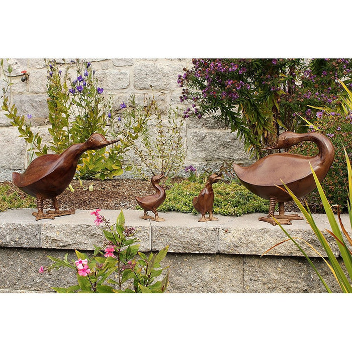 Create a garden vignette or add the entire Duck family to a water feature. With its extended neck, and upward curved beak, the Hello Duck will lend a friendly welcome to garden visitors. With a backward glance, the Goodbye Duck seems to say "Come back soon!" Complete the family with the addition of the sweet little Duckling Pair.