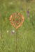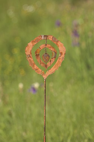 Attractive, staked, flamed copper triple spinning aspen leaf. Can be used anywhere as an outdoor decoration.