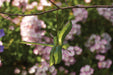 Green dragonfly hanging from a branch. Can be used for indoor or outdoor decoration.