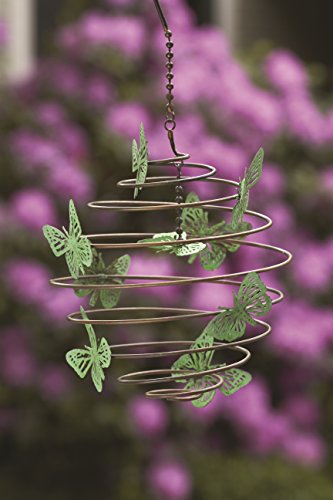 Hang this copper verdigris butterfly spiral from a shepherd's hook, planter hook, or tree to add interest to any garden/deck area.