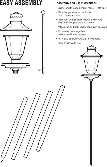 Deluxe Coach Lamp Feeder. 6 foot steel mounting pole included. Holds approximately 11 lbs. of seed. Fills via the swivel top.