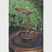 Copper Dripper/Fountain Hummingbird. Electric Pump only. Depth of water in bath for the fountain to operate at its best is approximately 3 inches. The minimum height of the water level for the pump to continue to work is approximately 2 inches. The dimension height from the metal base plate to the bottom of the circulating pump is approximately 3 inches. There is not a safety shut off if the water should go down too far to function. Bird bath sold separately. Is compatible with item ANCIENT955. Fountain dimensions are 13 inches tall and 7 inches wide.