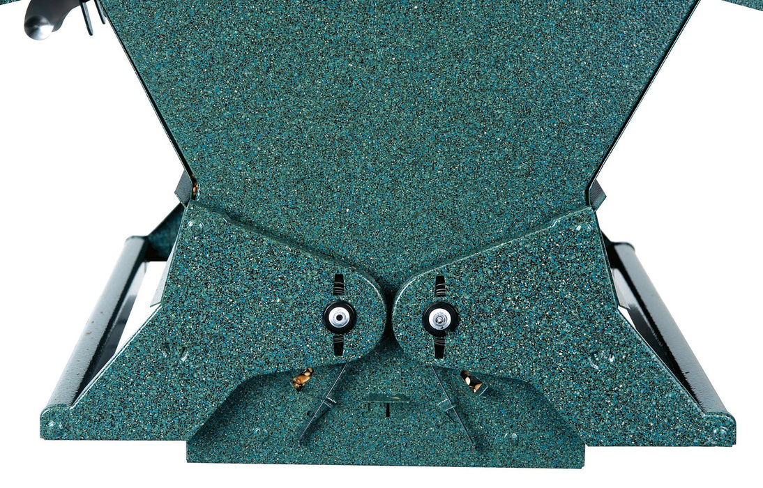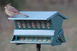 The Double Sided Absolute II. The Premier Squirrel-Proof Feeder for the serious bird enthusiast. Double-sided feeding draws more birds to yard. Huge 2 gallon/ 12 lbs. seed capacity. Hang or pole mount. (hanger & pole included) Adjustable weight settings to select the birds you want to feed. No-waste seed saver baffle. Easy-fill Top-Loc roof. Durable, chew-resistant powder coated steel body. The pole which is included measures 64 total inches with use of included ground socket, it measures 52 inches above ground. It comes in 4, 16 inch sections.