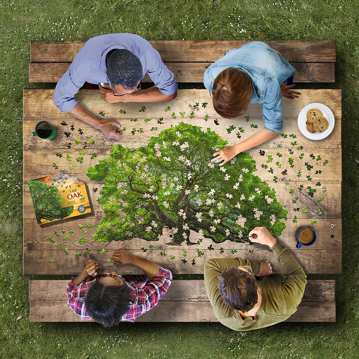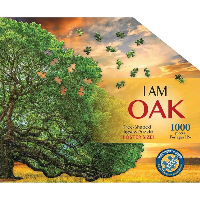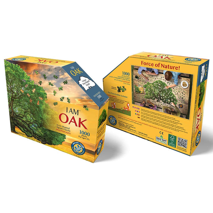 Each puzzle comes with an educational Madd Capp Fun Facts booklet. On one side is a fold-out puzzle image to hang as a poster or use as a reference. The flipside is chock-full of cool information! Did you know, for instance, that if your yard is littered with acorns, you're in a "mast year?" Fingers crossed some seeds survive and sprout – only one in 10,000 acorns grows into a tree!