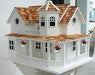 Out on the East End of Long Island, in the toney hamlet of Quogue, you'll find summer houses just like this Post Lane Cottage . A great, big beautiful wraparound porch and a western red cedar shingled roof, including a turret, are the standout features of this new Signature birdhouse. Three hanging flower baskets adorn the porch. There are two separate nest boxes separated by an interior wall. A removable back wall, drainage, ventilation, an unpainted interior and a 1. 25 ” hole size will accommodate wrens, finches, chickadees, nuthatches and titmice. Item Dimensions: 12” H X 16” W X 12” D.