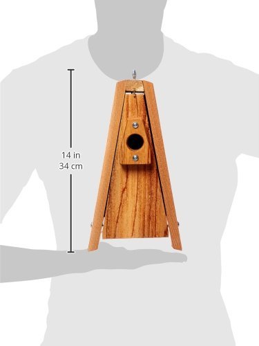 Country squire A-Frame wren house with predator guard and 1.125 inch entrance. House has sawed grooves in wood below entrance for young birds learning to exit.