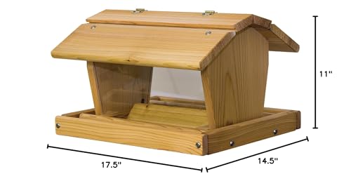 Mixed seed, barn style post-mount feeder. It has a convenient flip-top for easy refill. 14 lb. capacity.